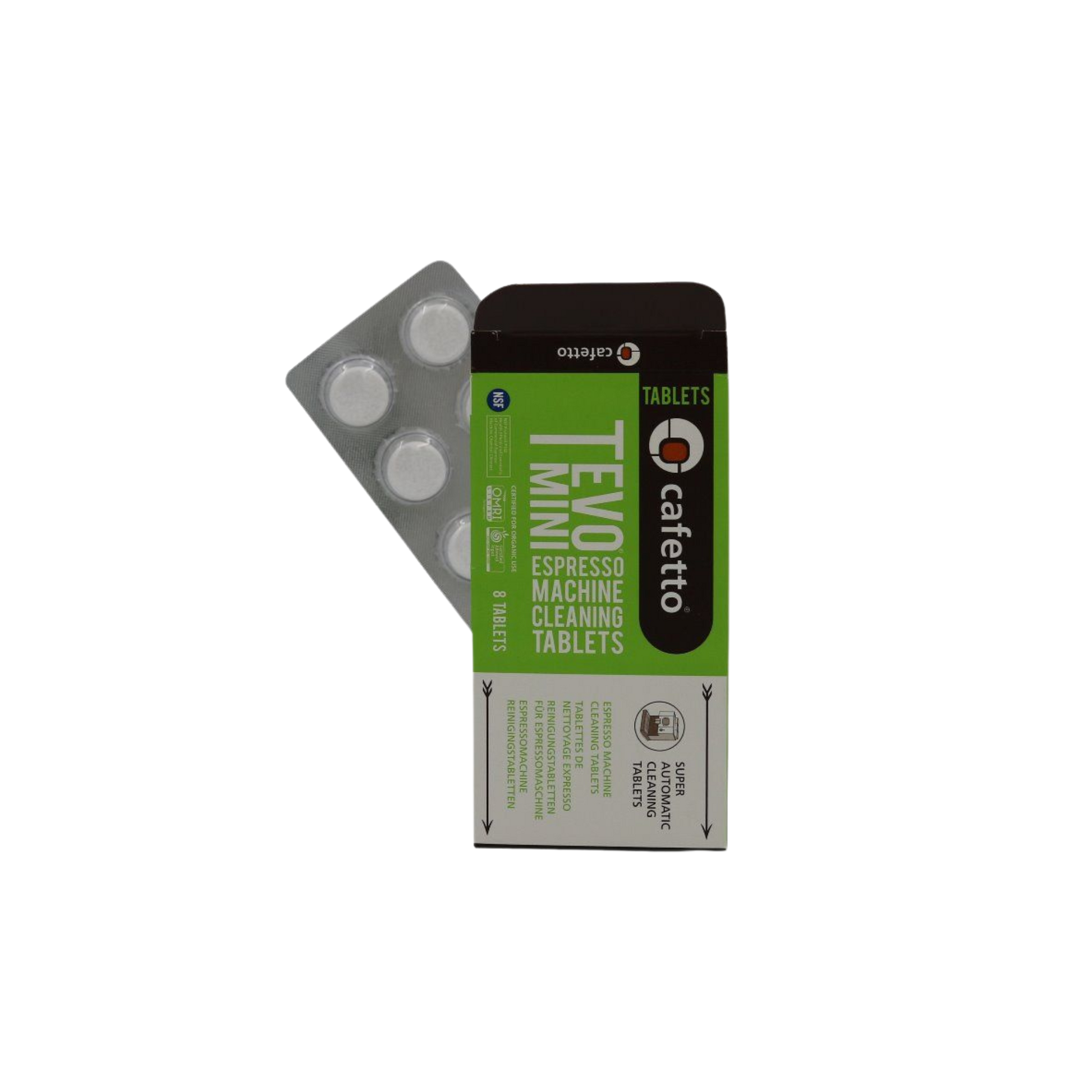 - Convenient portion-controlled Tevo® Mini tablets—an easy alternative to traditional espresso machine cleaning powders